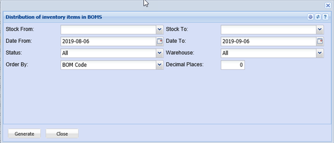 Distribution of inventory items in BOMS Report