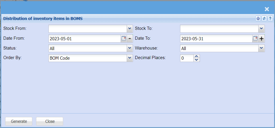 Distribution of inventory items in BOMS Report