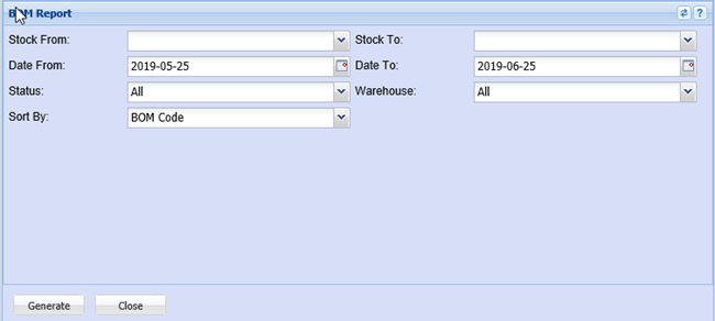 A detailed report showing each BOM created with recipe of the quantity and cost price created.