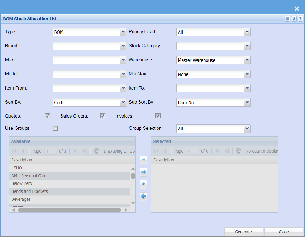 BOM Stock Allocation List