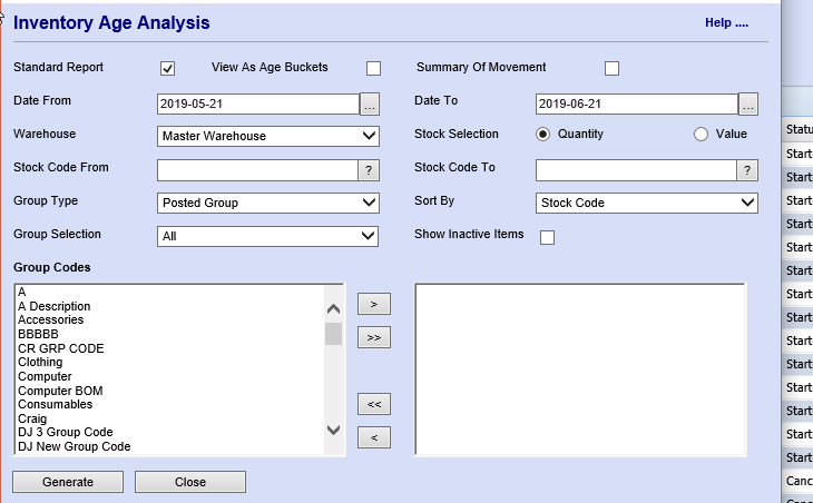 Stock Selection – to selection either quantity or value option for inventory age analysis