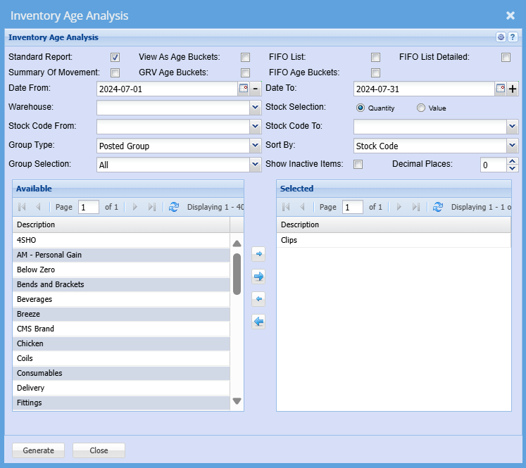 | FIFO Detailed | Put a tick on if you wish for a report to show First In First Out details |