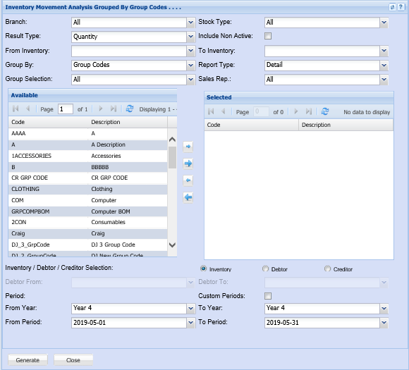 Inventory Analysis of Movement Grouped by Group Codes, Inventory / Debtor or Creditor