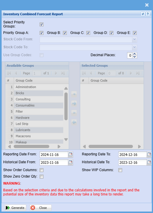 | Reporting Date From | Reporting Date from is the date range to calculate the recent sales quantities of stock items e.g. the last three months. |