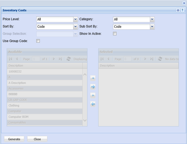 To run the report, ensure that the Price Level selected is ”ALL” so that all price level categories will appear on the report.