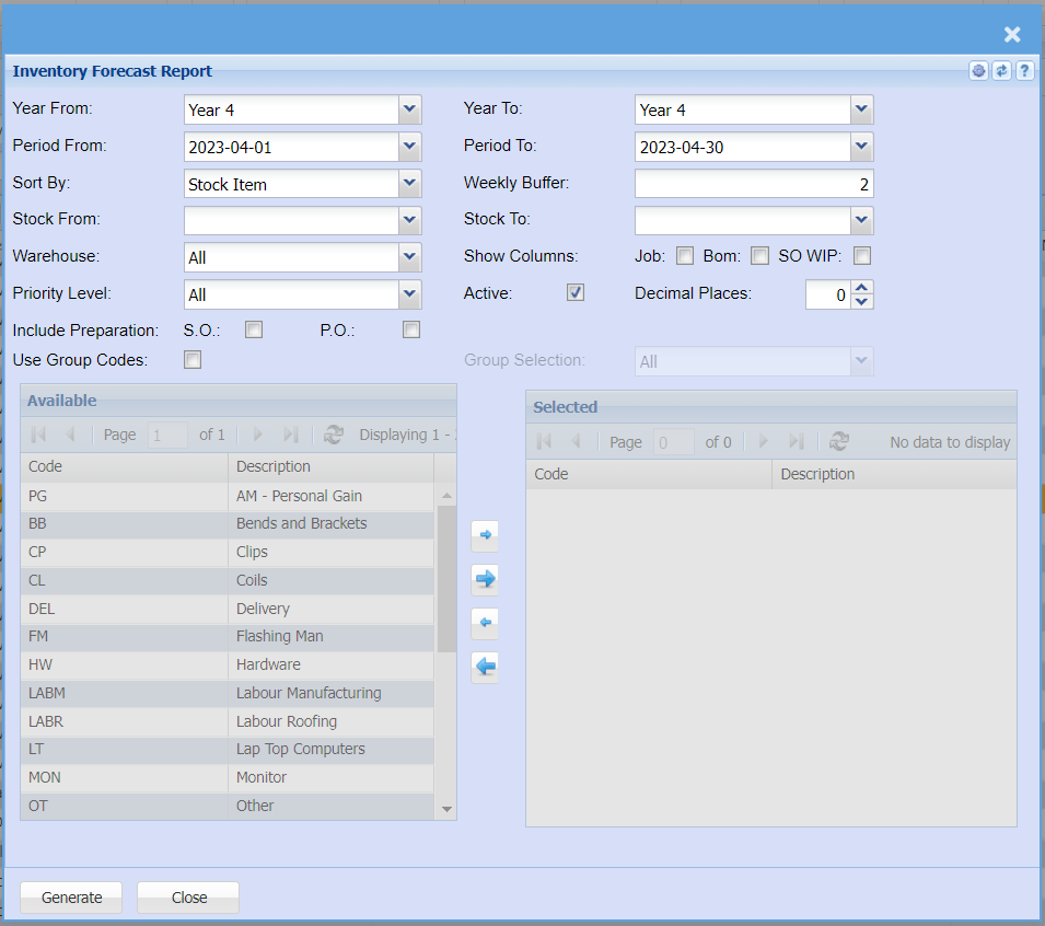 | Active Tick | Allows the user to run either active or inactive inventory forecast |