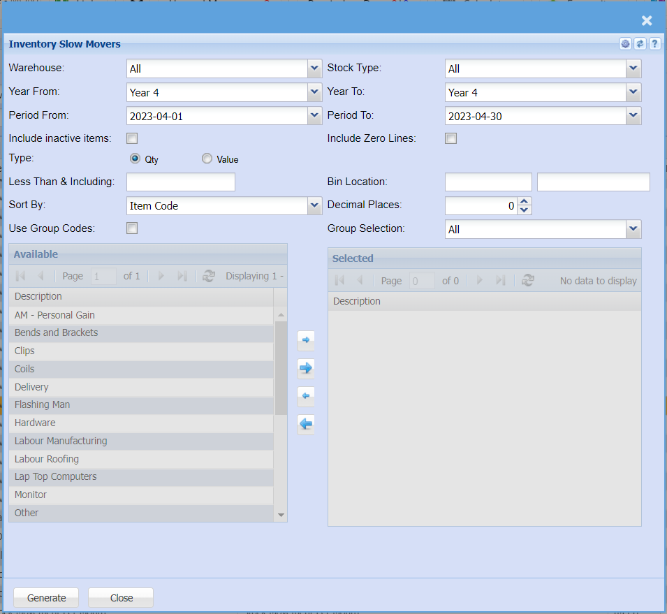 Inventory Slow Movers