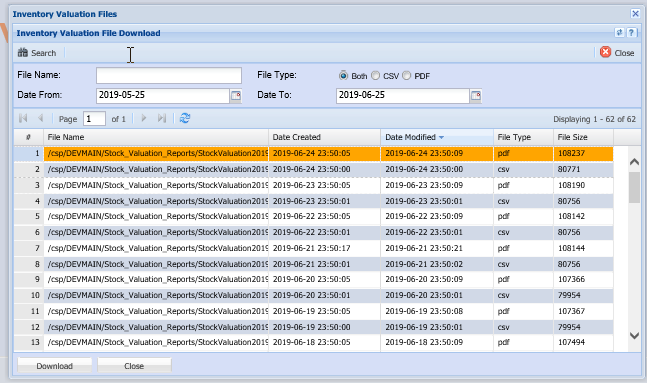 Inventory > Reports > Inventory Valuation File Download