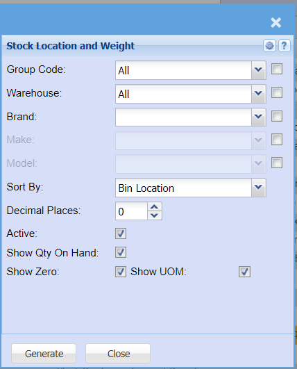 | Active | this option will show active stock locations and weight only if selected |