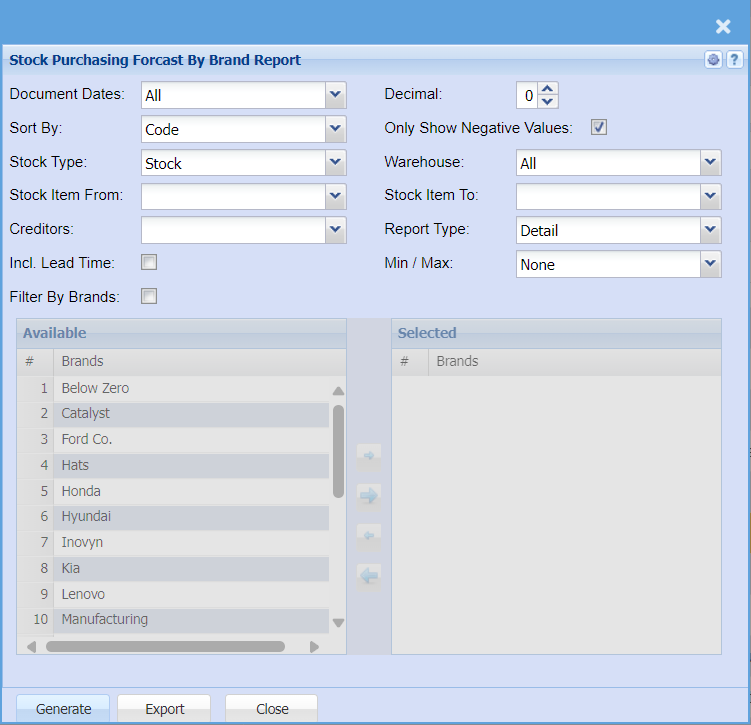 Stock Purchasing Forcast By Brands Report