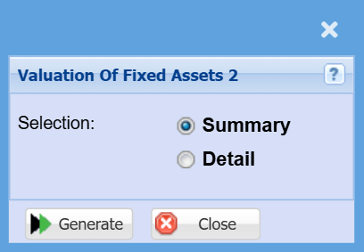 | Summary | If you leave the selection on summary this will report will only show a list of all inventory fixed assets |