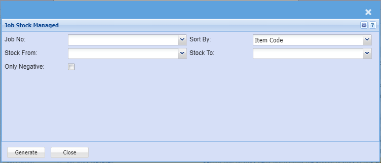 Reports only on stock items which shows the amount of stock in WIP and how much has been managed. Reports only per job.