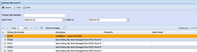 View – Opens the currently selected Picking Slip to either view or change the information within.