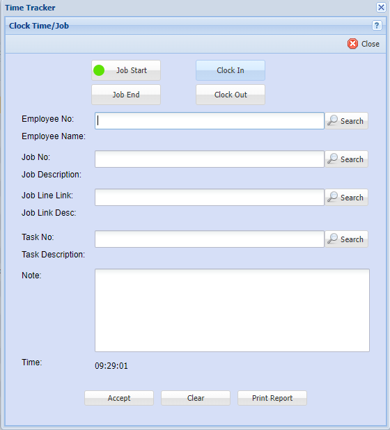 When clocking for Checkin and Jobs, one is able to use this window outside of the system to capture time.