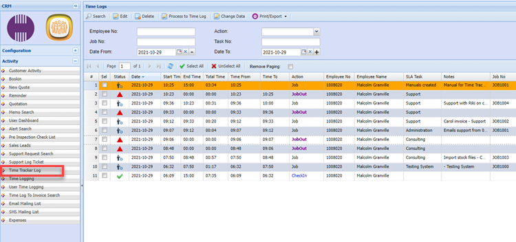 Add To Job - Allow the user to process a particular time log to a job This button is only available if the time log has been setup accordingly.