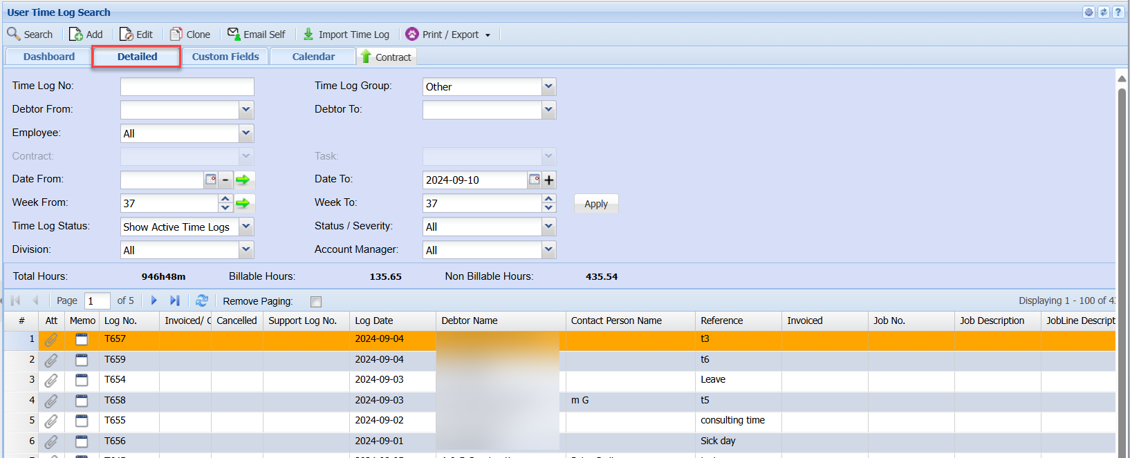 User Time Logging Search