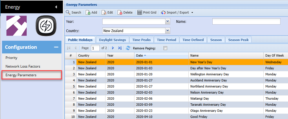 | Public Holidays Import/Export | Import and Export public holidays - See Manual |