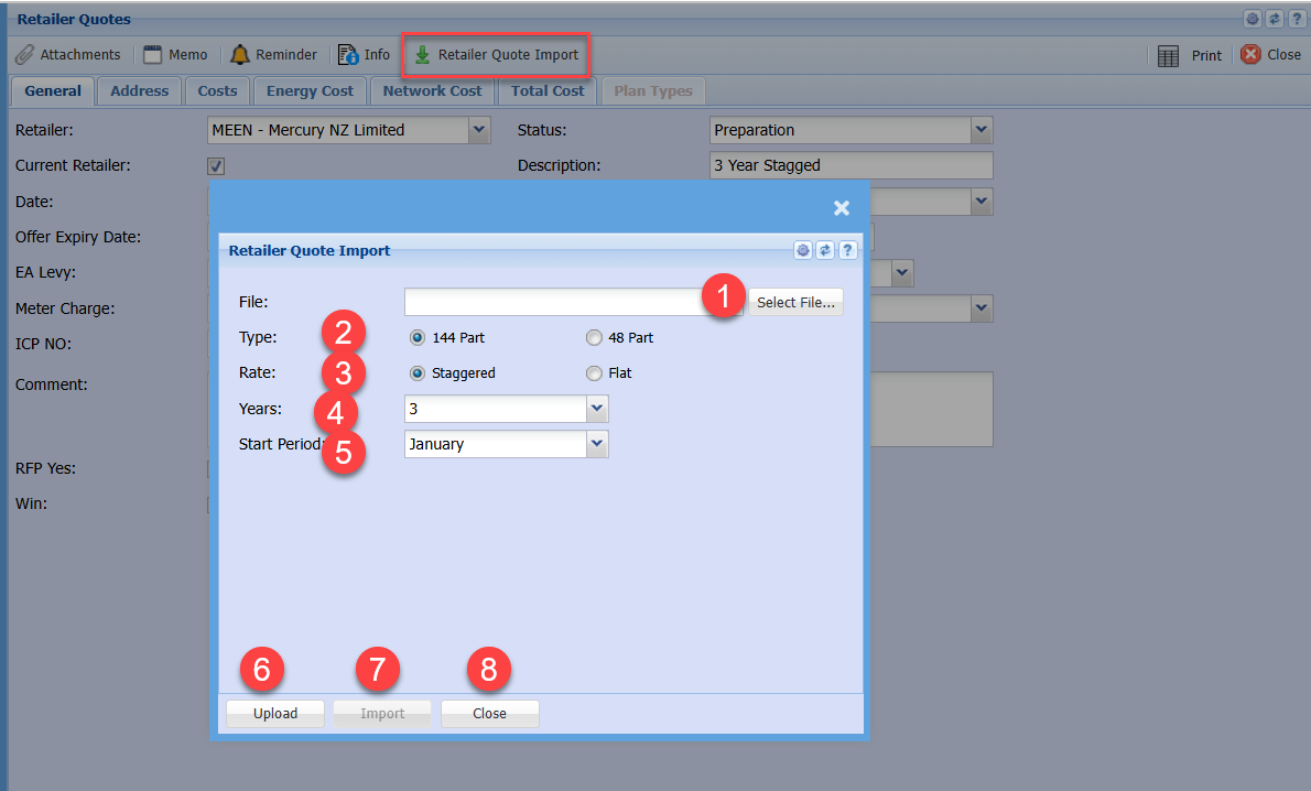 Once the Excel files are prepared, go to Retailer quote import