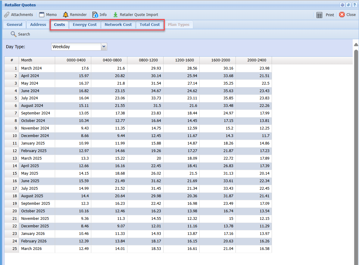 After import is done, it will populate all Tabs with cost data