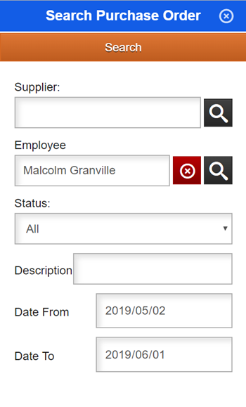 Purchase Order Window Search