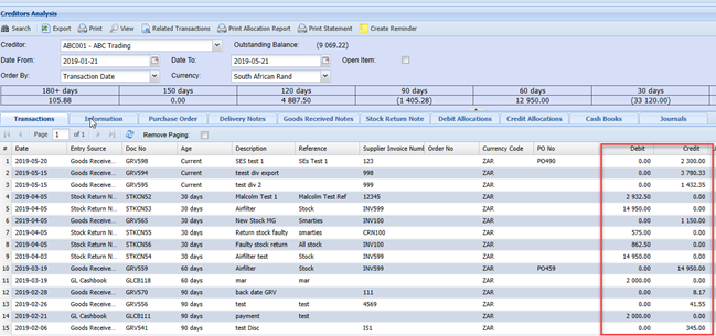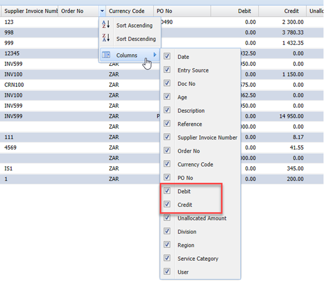 This will show you the active and hidden columns, check that the credit column is ticked
