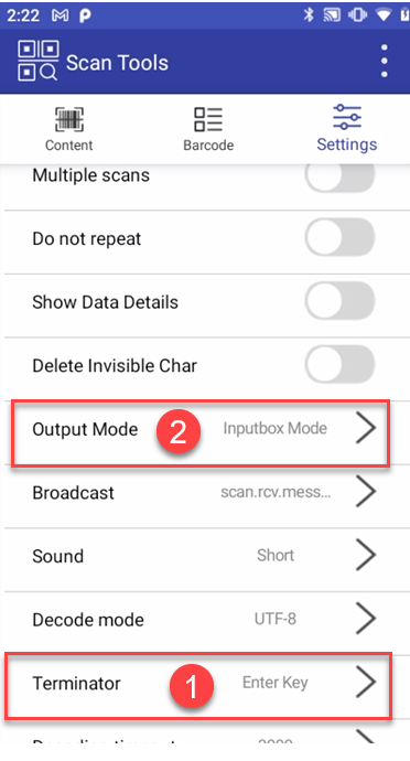 Output Mode - must be Keyboard