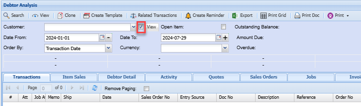 When selecting a debtor/customer, creditor/supplier, or any of the mentioned documents, the drop-down menu will only show inactive customers, suppliers, inventory item codes, or GL analysis