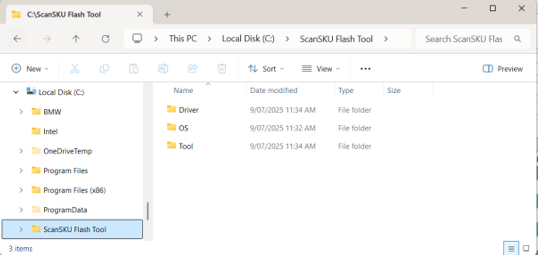 - Download and extract all or unzip the software from the shared link. Move folder “ScanSKU Flash Tool” to the root folder directory C: