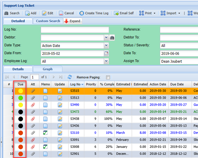 In various areas of the system, there are colour codes indicating over due or future dated transactions.