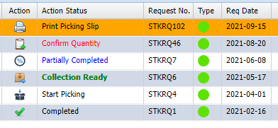 The stock request icons in Stores allows the user to see at which stage the stock request is at in the stores.