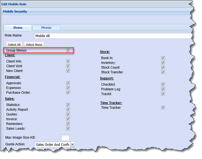 The setting for the role is based on the tick to activate group menus or not