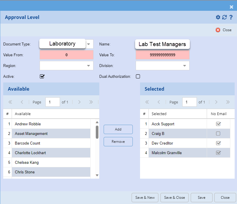 Setup which users can authorise the Lab tests