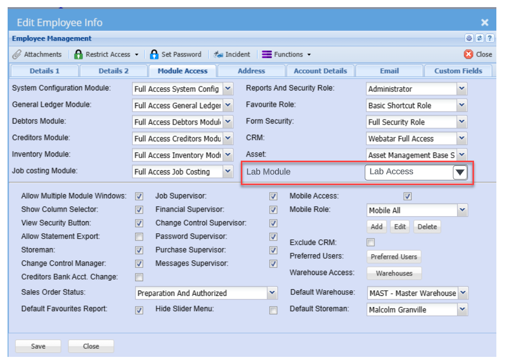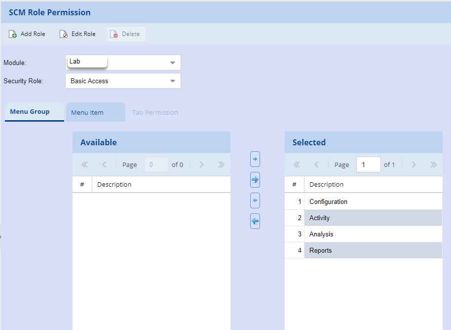 Create Role permission for Lab access