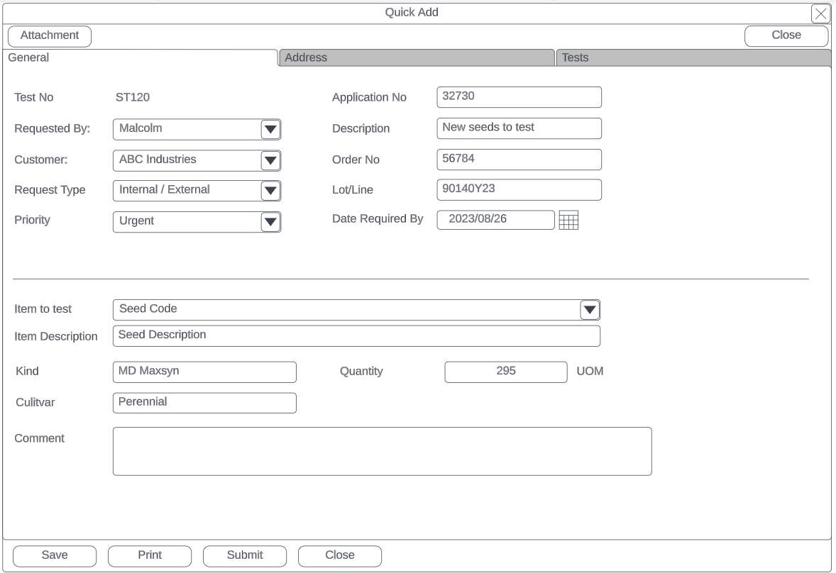 | Date Required By | Date the test is required, will default to 14 dates from issue |