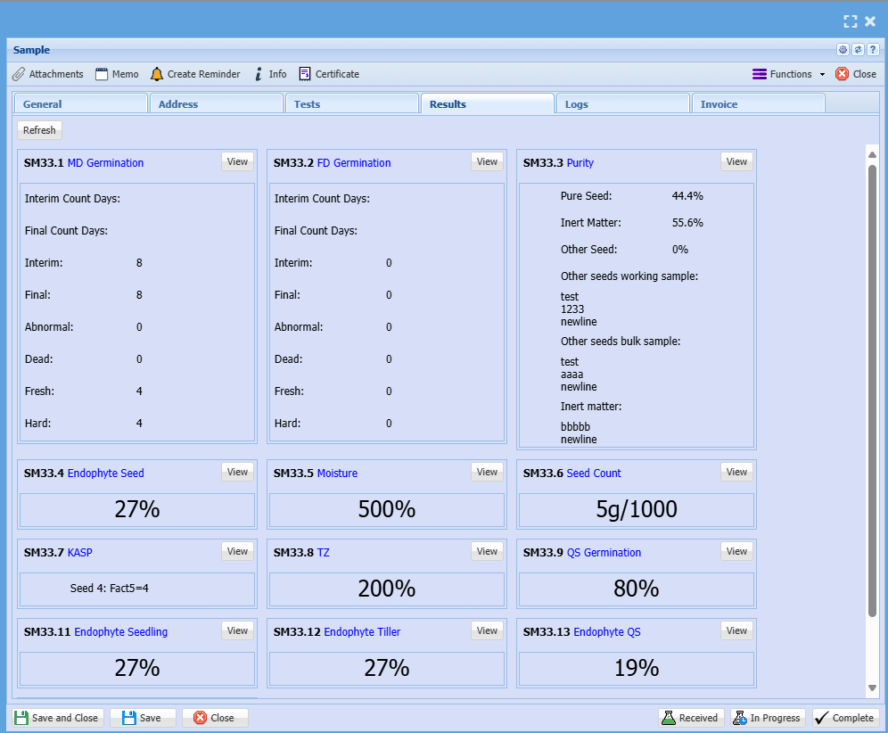 | Sample No | Displays the Lab unique test number |