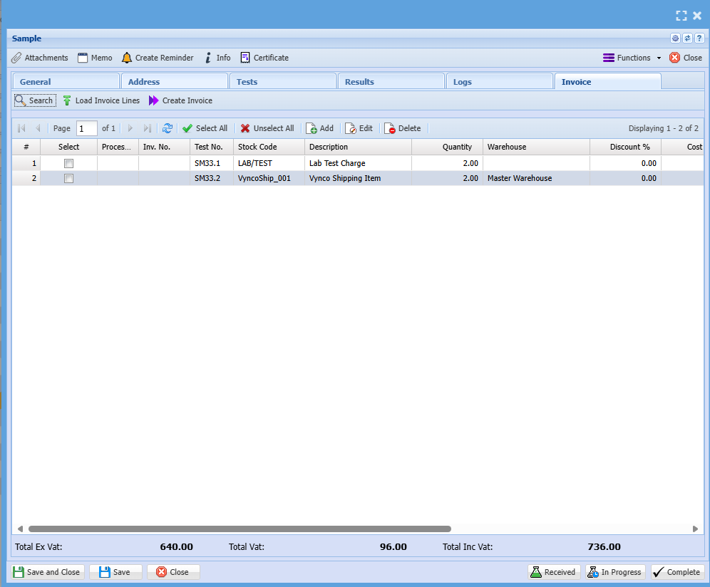 | Invoice group | Assign this Lab test to an Invoice group for invoice |