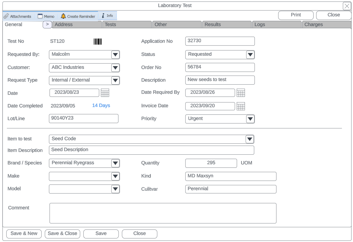 Date Required By Date the test is required, will default to 14 dates from issue