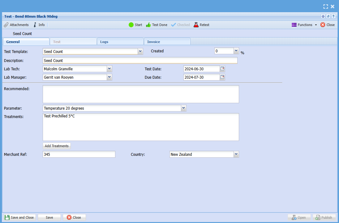 | Lab Tech | Lab Tech assigned |