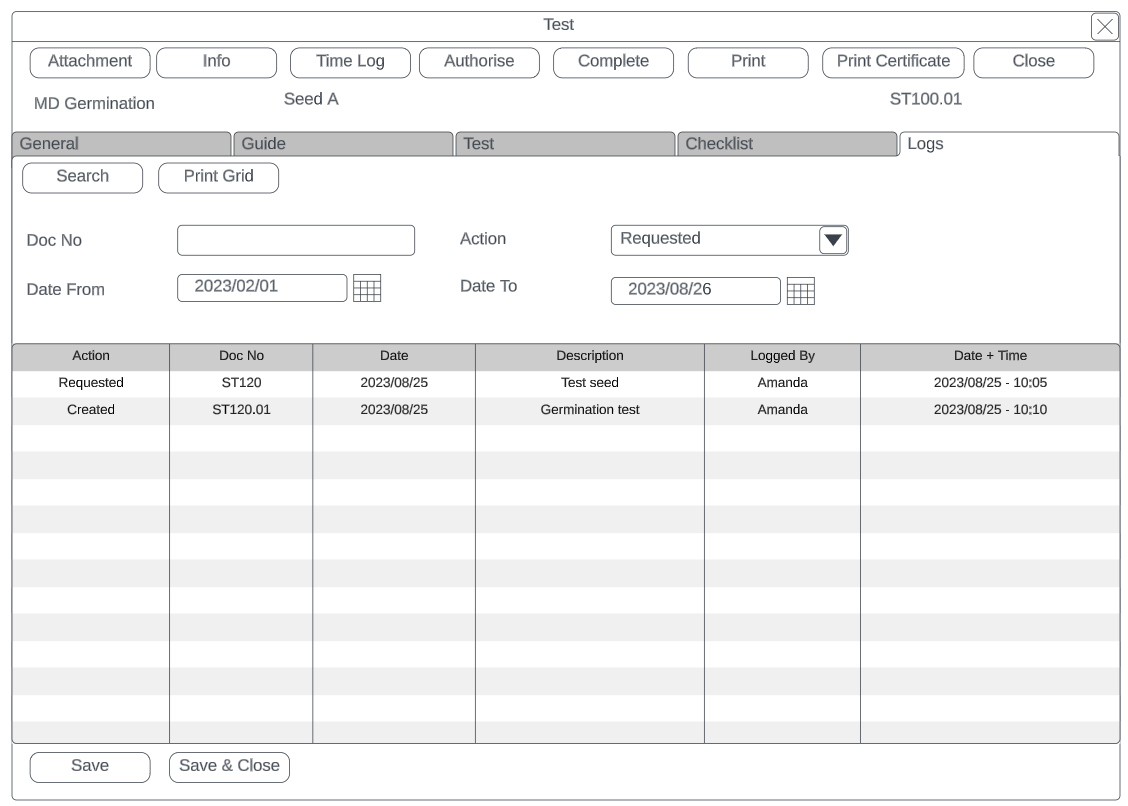 | Doc No | Indicates which test is been logged, main Lab test or test |