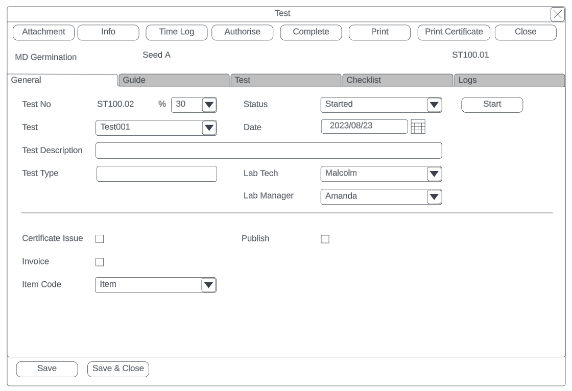 | General Tab | This holds the basic information of the test |