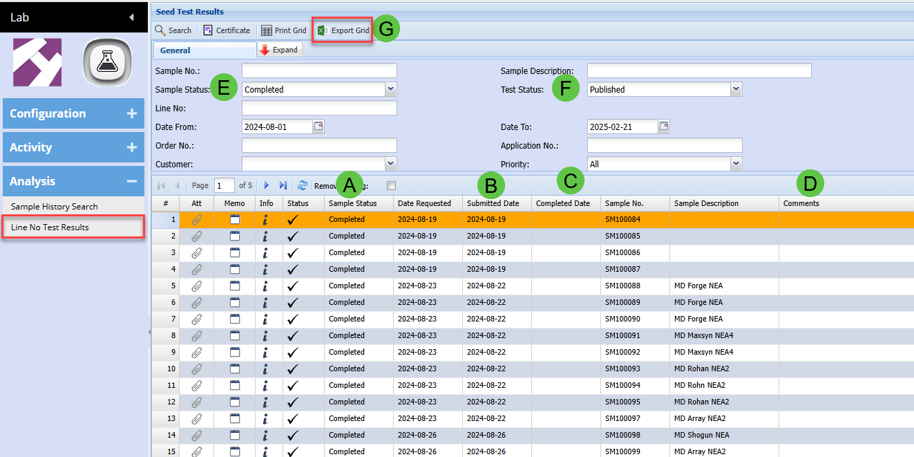 Lab Module > Analysis > Line No Test Results