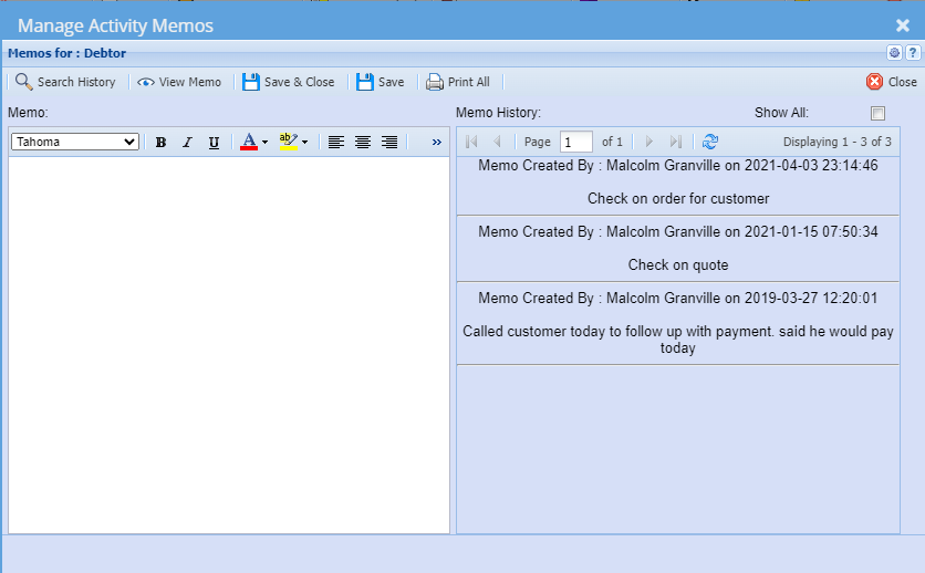 The memo note has two icons, one indicating that there is no note and one indicating a note is present.