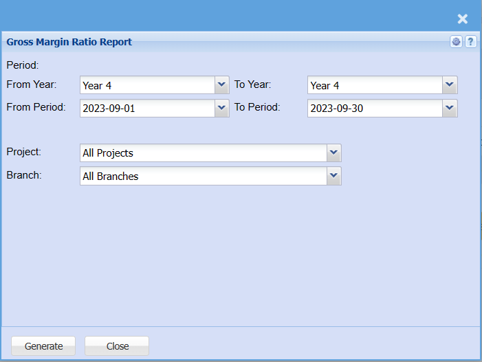 Gross margin ratio report is given on a financial period per month and is worked out by gross margin divided by turnover