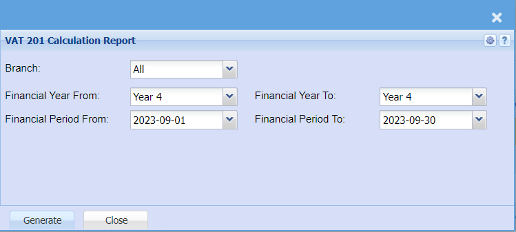 VAT 201 Calculation Report