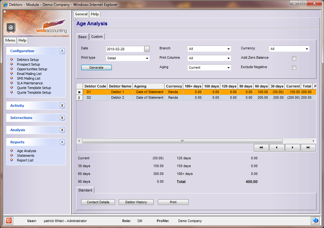 Repeat the steps above for other Debtors. Based on the example your Debtors Age Analysis should look like this: