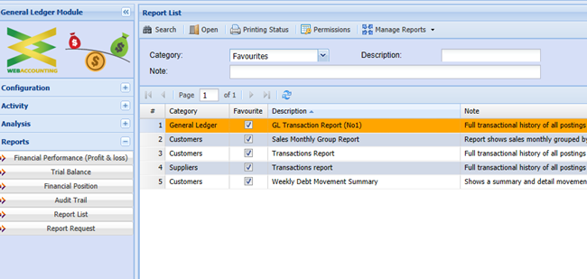 1.General Ledger transaction report number one