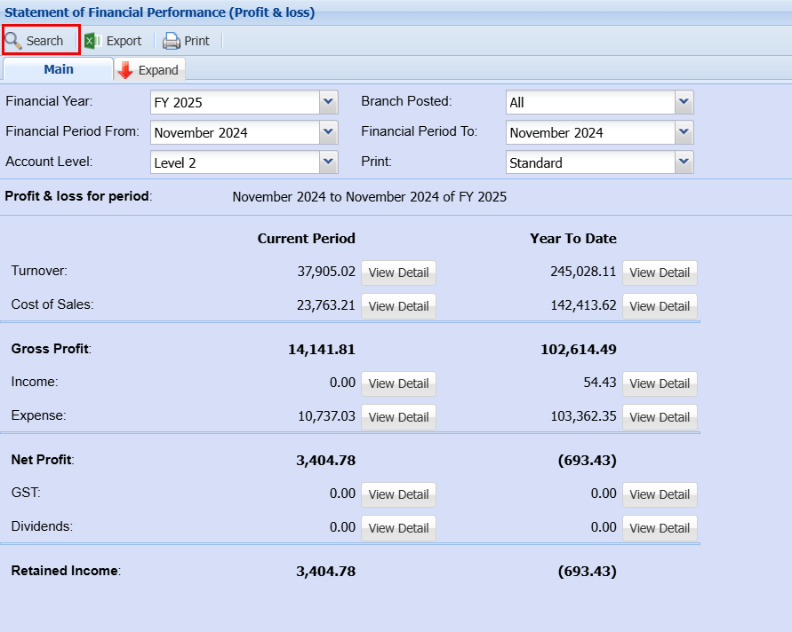 > Reports > Financial Performance (Profit and Loss)