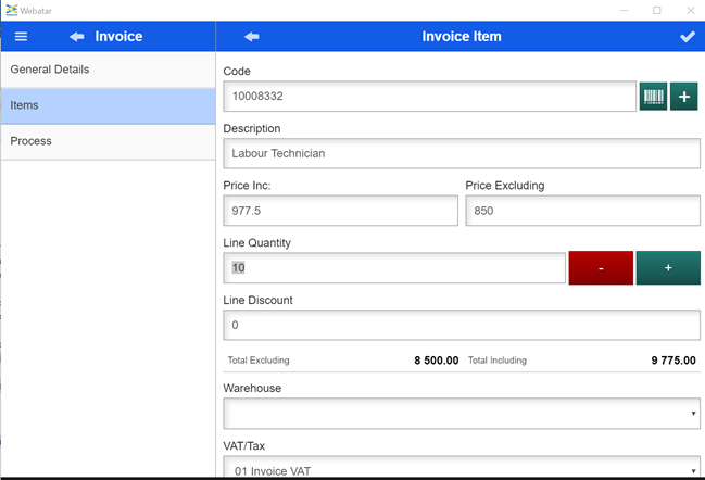 Adding in a new item on the invoice