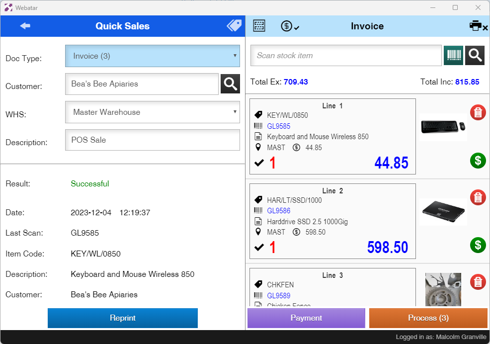 Process the sale and sync to main system Clears the invoice or credit note after processing |