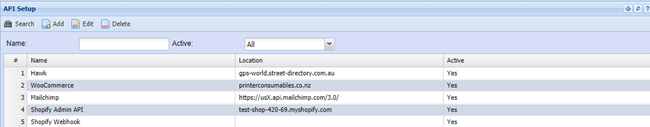 System Configuration>Security>API Setup